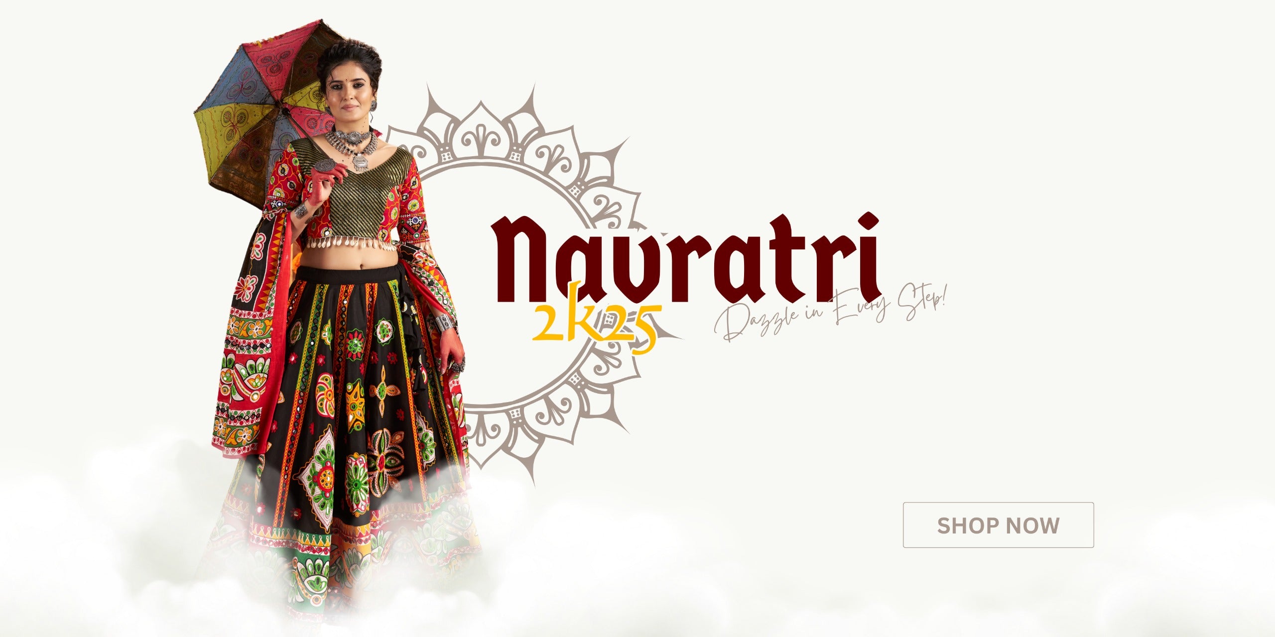 Navratri 2025 Pure Rayon White Lehenga Choli with Mirror Gamthi Work & Koti