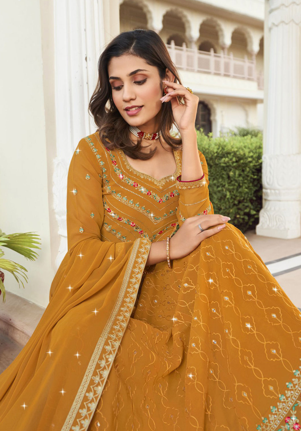 Navratri 2025 Pure Rayon Mustard Lehenga Choli with Mirror Gamthi Work & Koti