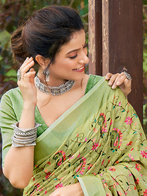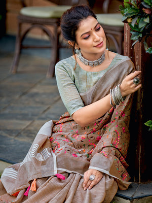 Elegant Linen Cotton Saree with Intricate Embroidery – Office & Festive Wear