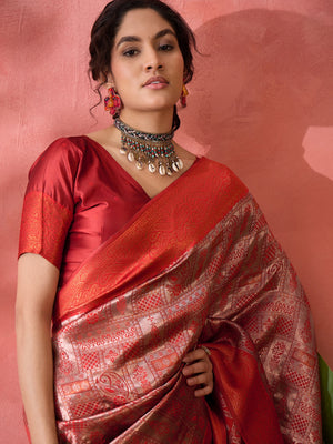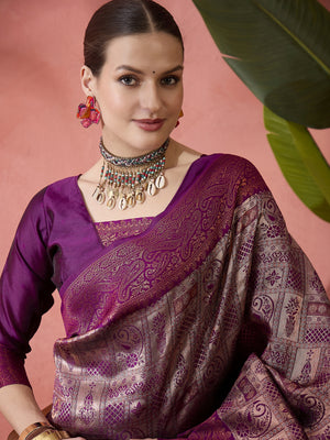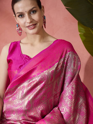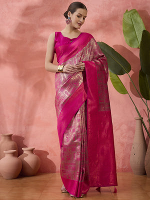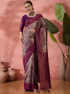 Elevate your ethnic style with this Poly Silk Jacquard Saree from Kota Silk, featuring a rich woven jacquard pattern for a regal touch. Crafted from smooth and lustrous poly silk, this saree offers a perfect drape, making it ideal for festive celebrations, weddings, and traditional gatherings.