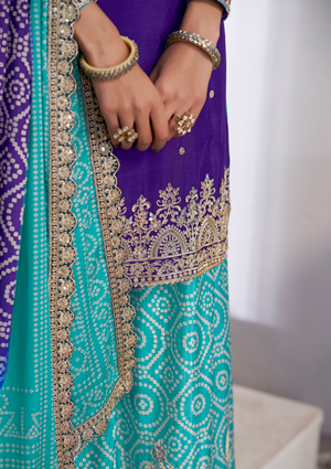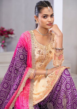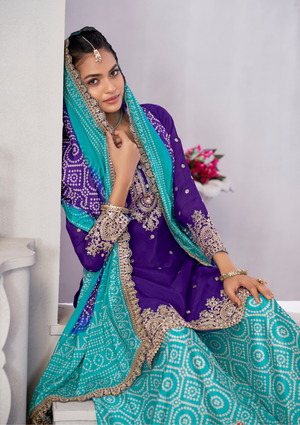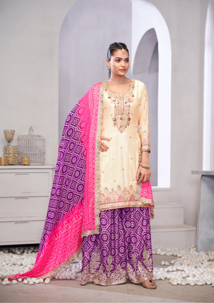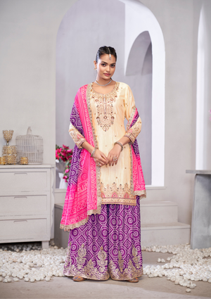 Premium Chinnon Readymade Salwar Suit with Sharara & Digital Print Dupatta – Free Size XL