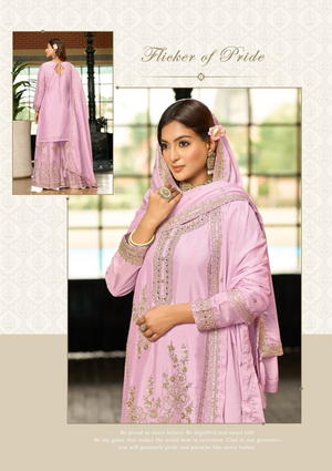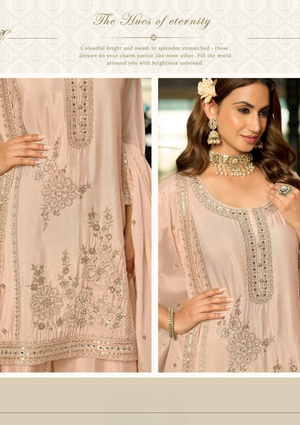 Add regal charm to your wardrobe with this stunning Premium Chinon Silk Salwar Suit, adorned with elegant embroidery and fine handwork. Tailored for women who appreciate refined ethnic fashion, this 3-piece set includes: