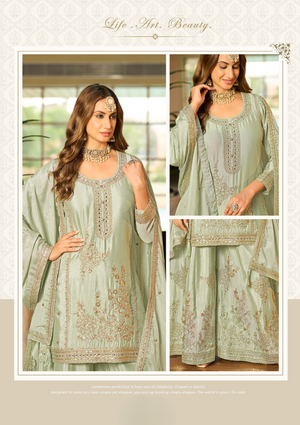 Premium Chinon Silk Embroidered Salwar Suit with Handwork & Heavy Palazzo – Sizes L to 3XL