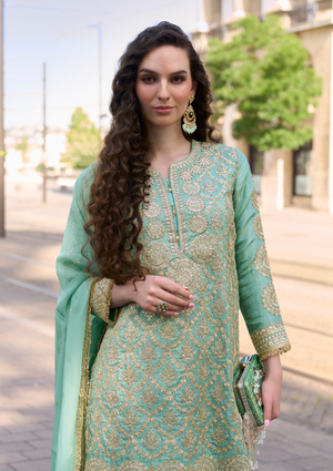 Dupatta: Embroidered Silk / Organza Dupatta with rich detailing to complete the ensemble