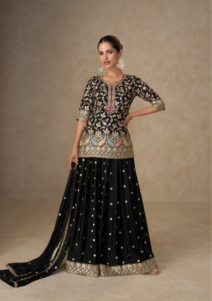 Top: Premium Real Chinon fabric with detailed embroidery work