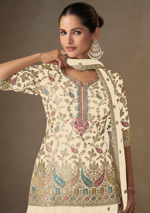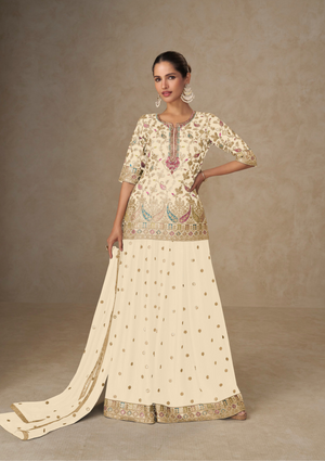 Real Chinon Embroidered Salwar Suit with Palazzo & Dupatta – Free Size Elegance