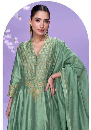 Real Premium Roman Silk Embroidered Salwar Suit with Long-Cut Top & Organza Dupatta – Sizes L to XXL