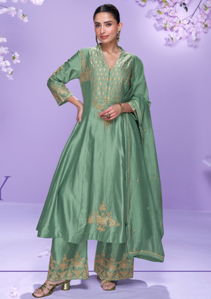 Indulge in luxury with this Real Premium Roman Silk Salwar Suit, featuring an elegant long-cut embroidered top paired with a chic plazzo pant and a beautifully embroidered organza dupatta. Designed for modern women who love a touch of royalty, this suit is ideal for weddings, receptions, festive events, and engagement ceremonies.