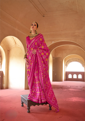 Super Polyester & Viscose Saree with Traditional Patola Design – Party & Festival Wear